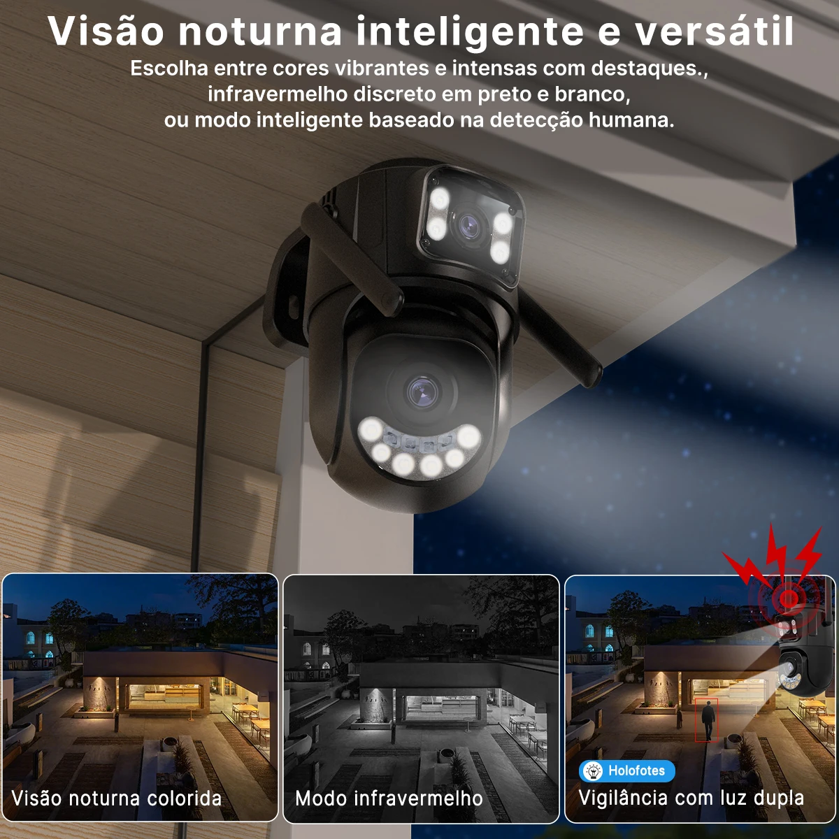 Visión nocturna versátil e inteligente, 3 modos para una vigilancia clara