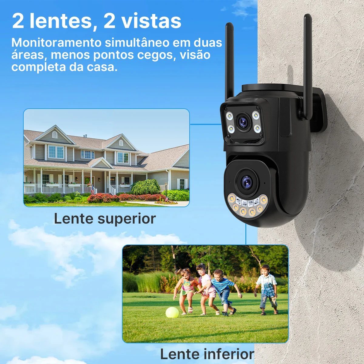 2 lentes 2 vuelas, monitoreo de doble área con menos puntos ciegos